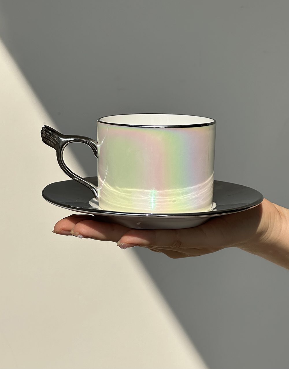 客戶定製 珠光炫白陶瓷咖啡杯