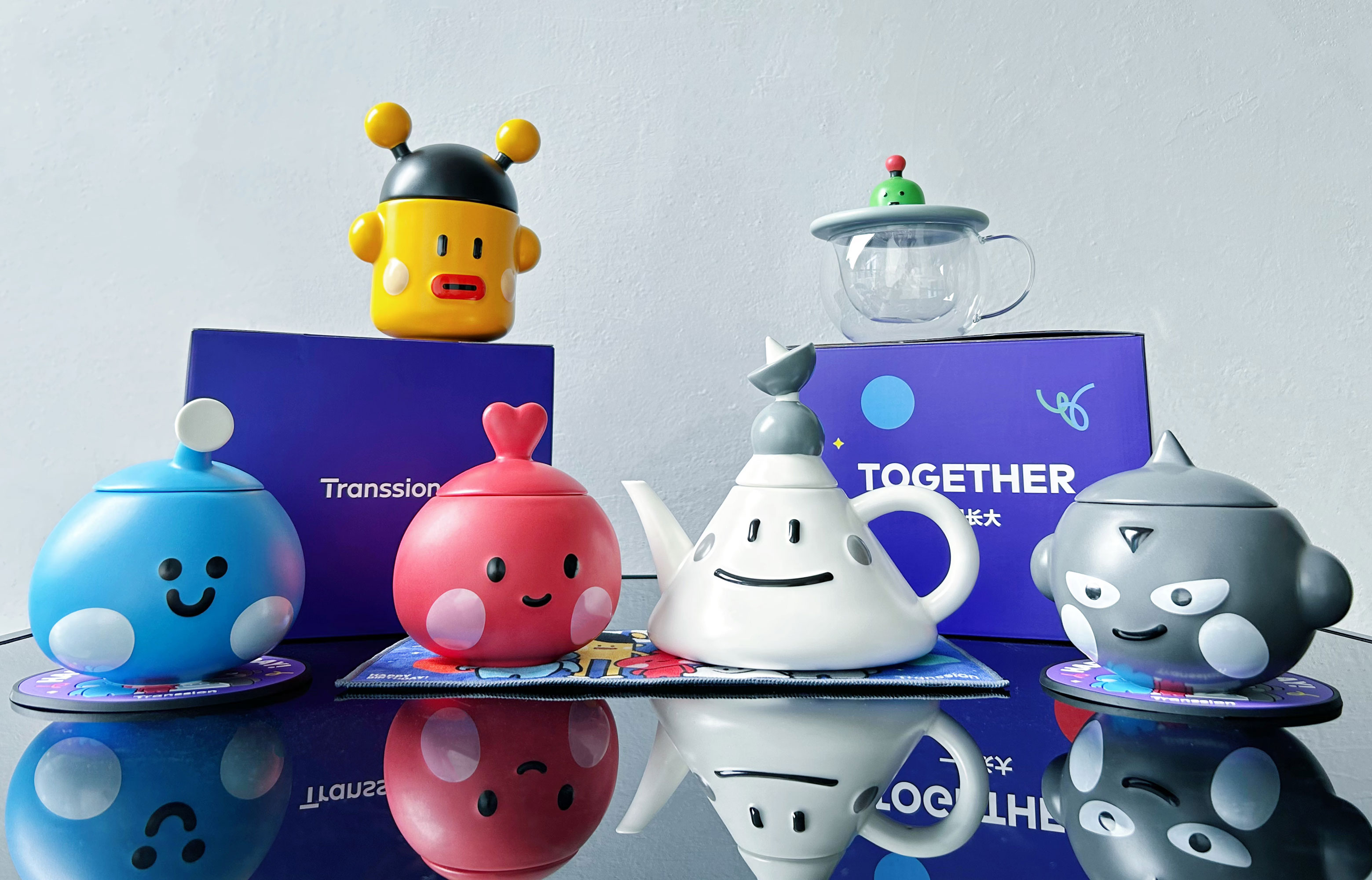 傳音控股以核心價值觀:用戶、尊重、開發、創新、共享、底線對應定製了五款陶瓷馬克杯和一款陶瓷茶壺。下麵是榴莲视频APP下载的生產圖和實拍圖: